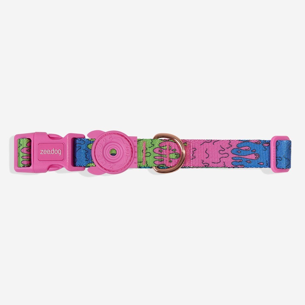 The Melted collar is a fully adjustable dog collar from the Lords of Sheddings Pets?collection. It is super soft on the fur and is made from durable polyester. The buckle has a 4-point locking system for added safety.